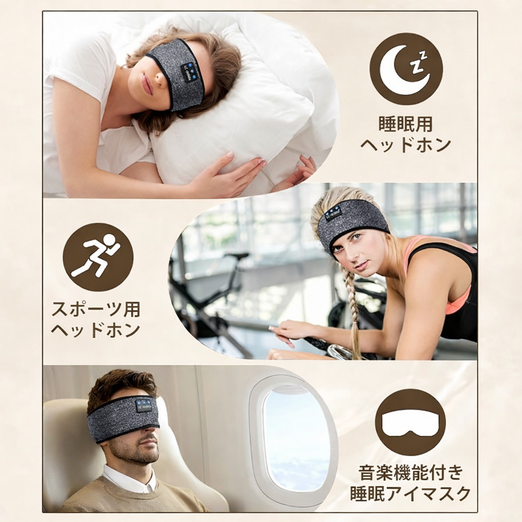 目元を優しく包み込み、外部の光を完全にシャットアウト。脳を強制的に「夜モード」へ切り替えます。